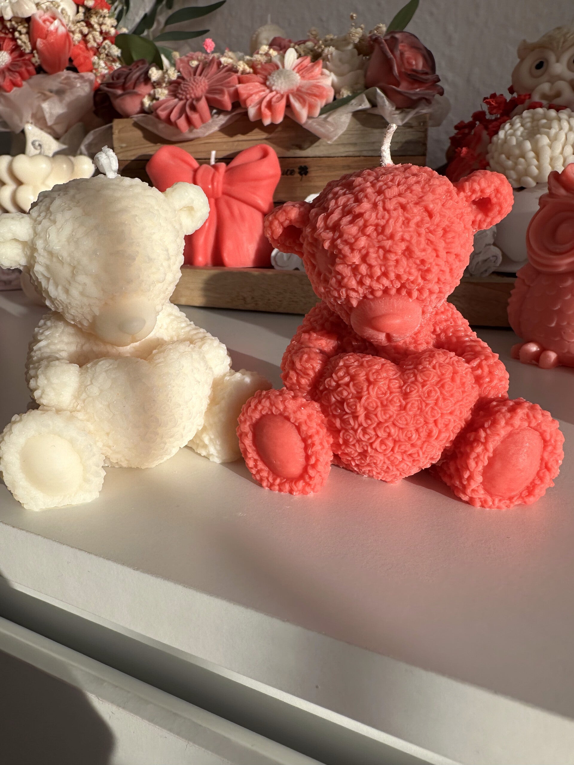 Kerzenstrauß "red Eule Valentine" handgegossen aus Rapswachs