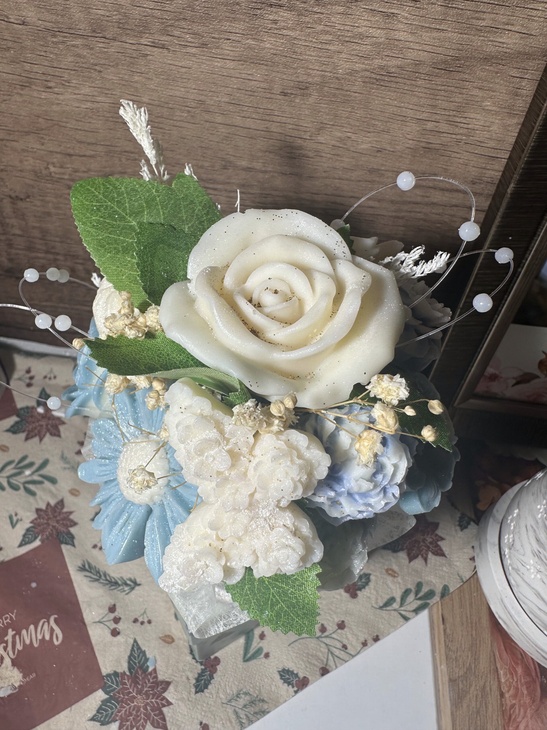 Kerzenstrauß " Blue Elias" handgegossen aus Rapswachs