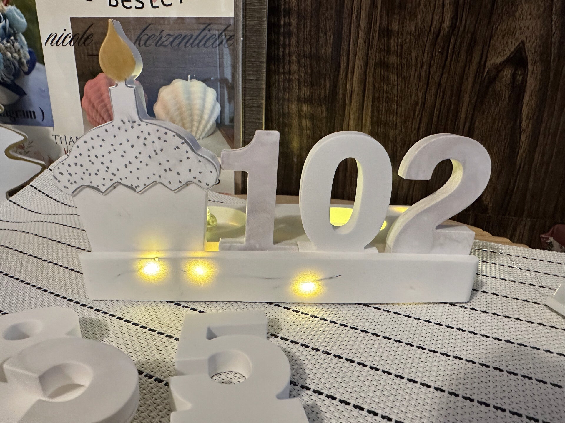Dieser handgefertigter Geburtstagshalter mit passenden Zahlen.Mit seiner schlichten Form und der matten Oberfläche ist er ein stilvolles Statement – ganz ohne Kitsch.