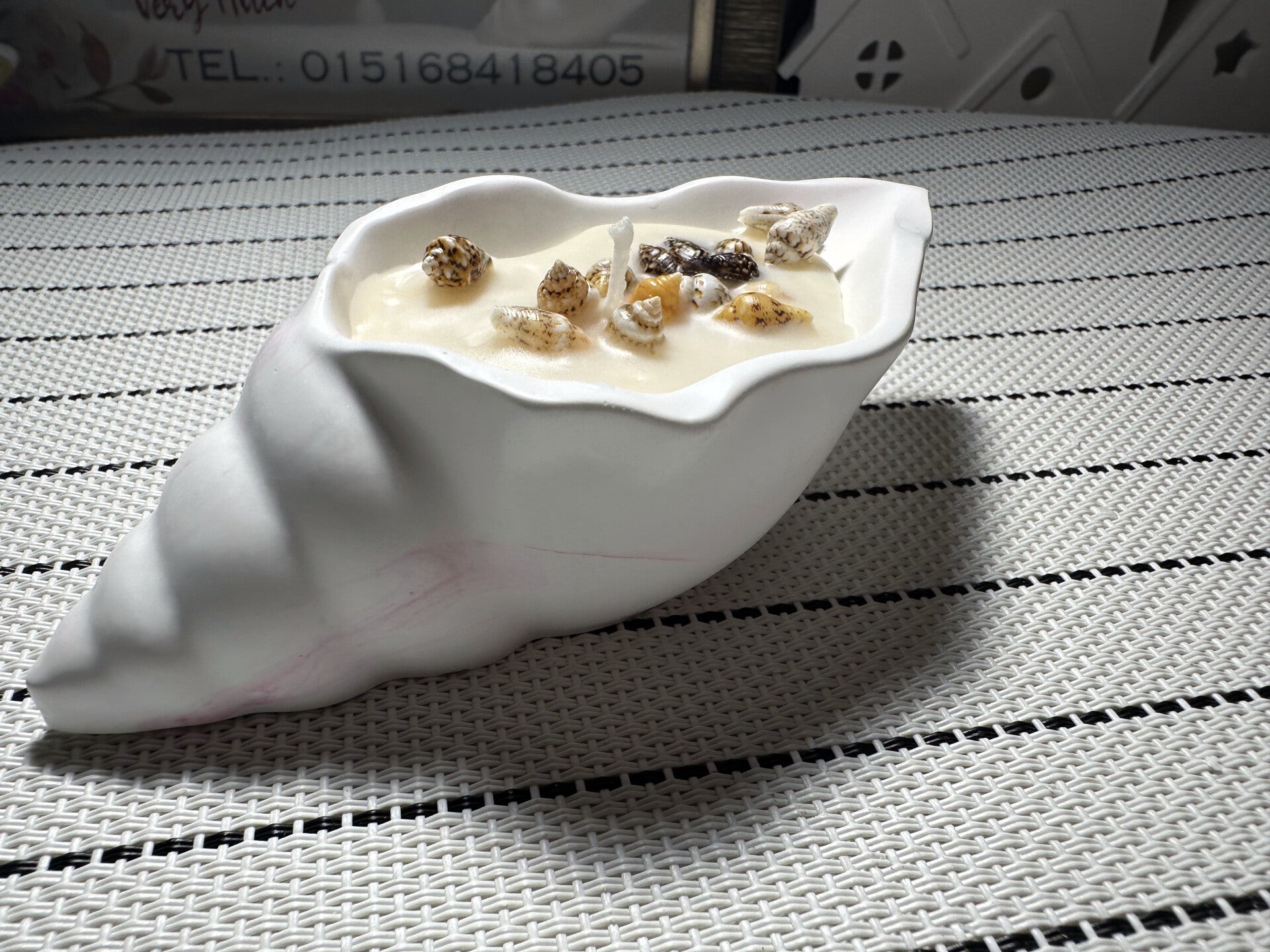 Schale „Shelly“ – handgegossen aus Raysin, in Muschelform mit Rapswachs